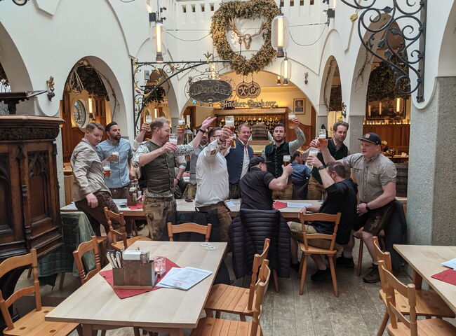 Wieder gastierte die Wirtshausmuse beim Donisl in München. Diesmal feierten rund zehn ausgelassene junge Männer einen künftigen Bräutigam aus der Regensburger Gegend. Dem Hochzeiter in spe wird nicht nur eine hübsche junge Braut, sondern auch ein netter Schwiegervater anvertraut: Dieser ist kein Geringerer als Franz „Vere“ Härtl aus Wörth an der Donau.